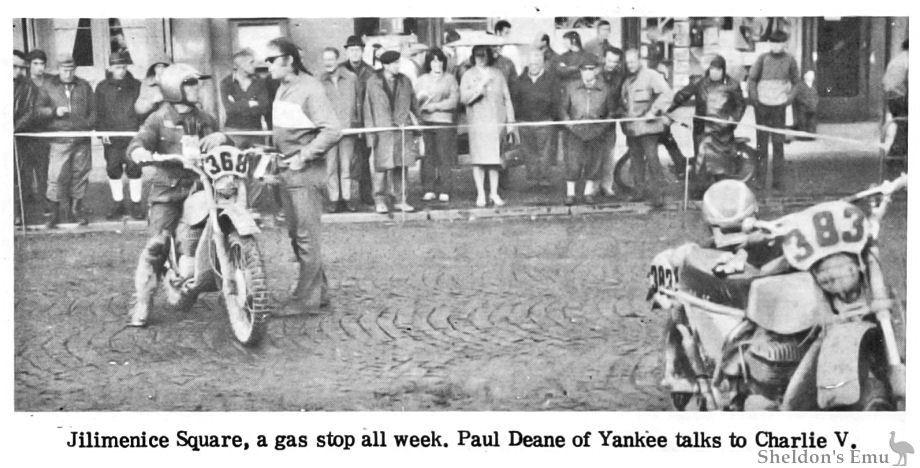 Last month we summarized how our guys did overall, not too well. It was a tough test for our somewhat less serious people. Penton's team did a terrific job until that final day, and many of the others individually carried on in a respectable manner. As teams, we still lack the all-encompassing organization of the Europeans, and the sophisticated cheating abilities used to keep the bikes going in the major trophy and vase contests. This rotten core to the event seems to be well established, and we are rank amateurs in our small efforts at competing at this level.