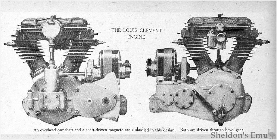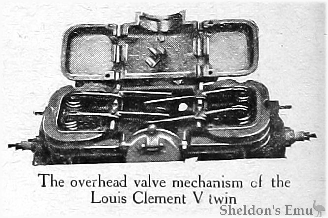 As the most typical of the new French design, the Louis Clement twin may be selected. The engine was designed and built by M. Calvignac before the war, and in a frame of quite ordinary design was in service throughout the hostilities. Improved and modified, it was placed on exhibition at the Salon, and after further modifications, made possible by modern production methods, it is ready to be offered to the public.