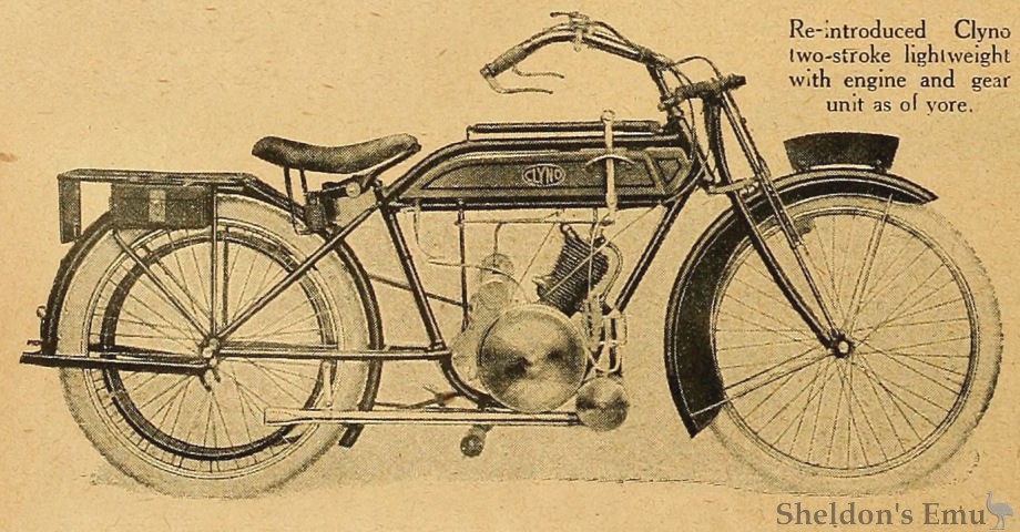 Stand 27.Since last Show a complete reorganisation of the Clyno works has been made, and models of the 925 c.c. spring-frame sidecar outfit and 269 c.c. two-stroke will appear, embodying several improvements. The passenger model, by reason of its luxurious specification, is not far from the top of its class, and it has not been found necessary to modify it to any great degree. A steel and phosphor-bronze plate clutch has, however, been substituted for the cork insert type previously used.