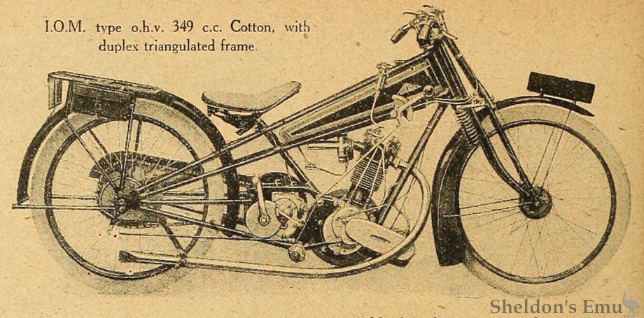 I.O.M. type o.h.v. 349 c.c. Cotton, with duplex triangulated frame.