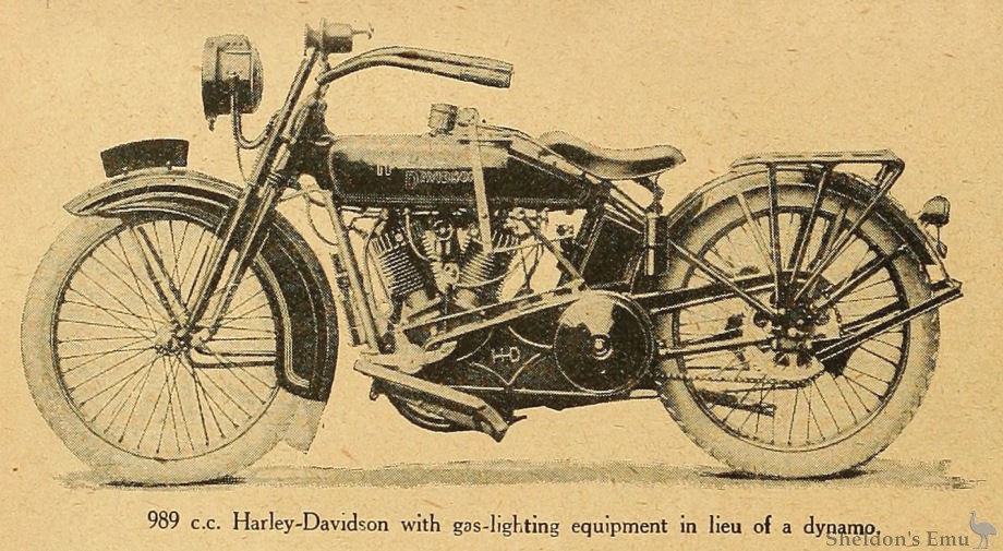 989 c.c. Harley-Davidson with gas-lighting equipment in lieu of a dynamo.