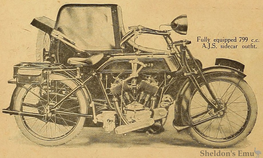 With a double-seated sidecar of the Princess type it makes an outfit capable of high-speed touring "three up"; full electrical equipment is included in the price of £167.