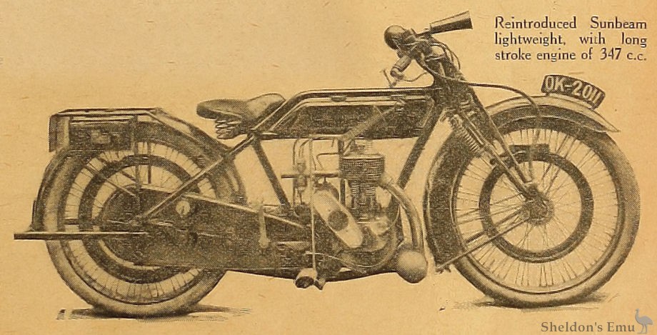 Success in racing and competitions both at home and abroad has been the lot of the Sunbeam last season, and the reasons for these achievements and for the well deserved popularity that these machines enjoy cannot be gathered from a perusal of the bare specifications of the Sunbeam range. The reasons for the Sunbeam success lie rather in details of design, workmanship and finish, which have been brought to a degree of perfection that must be seen to be fully appreciated. Visitors to the Sunbeam stand have the opportunity of seeing the complete range of these machines, which now caters for all classes.