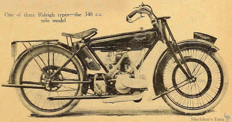 Two models of the well-known 348 c.c. medium-weight Raleigh are shown, and pride of place must be given to the 348 c.c. all-chain model...