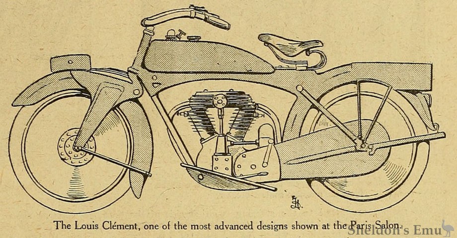 This machine, which is one of the most original motor cycles in the show, must not be confused with the well-known products of Clement Freres, who have unfortunately decided to retire from the motor cycle trade.