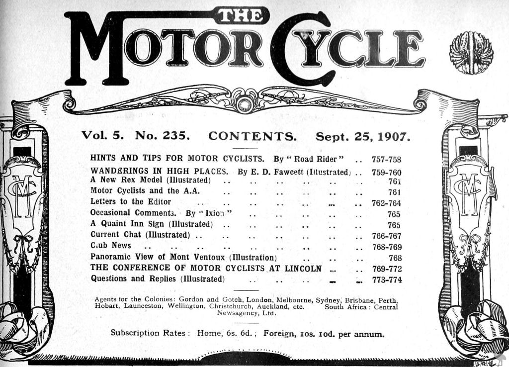 Hints and Tips for Motor Cyclists. By Road Rider 922