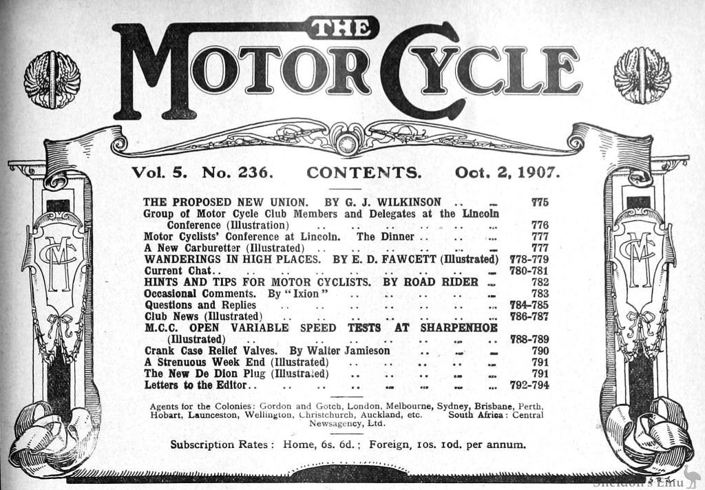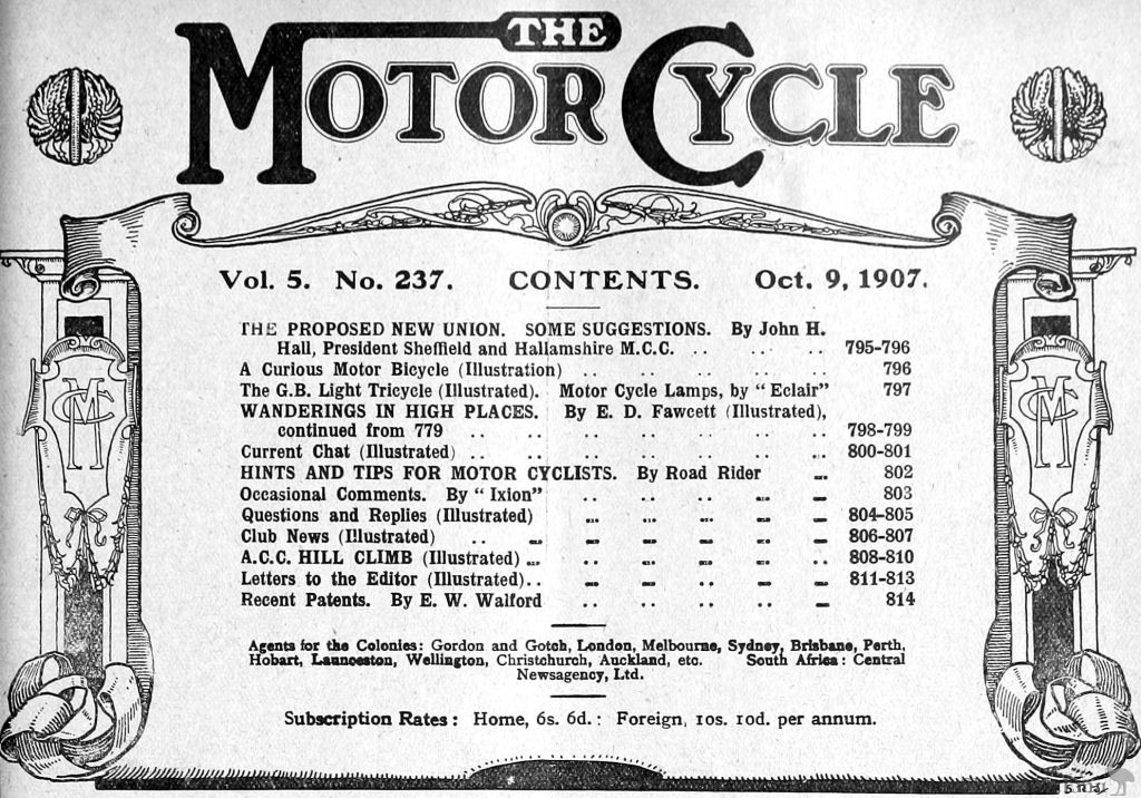 Leaderettes: THE A.C.U. AND SCOTTISH MOTOR CYCLISTS. THE 1908 T.T. 983-984