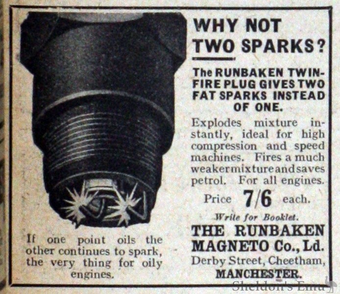 The Runbaken Magneto Company of Manchester were prominent makers of oil-filled coils, magnetos and other electrical equipment.