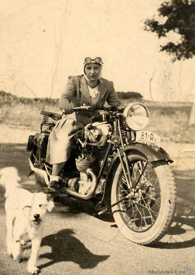AJS 1931 S3 V-Twin, Romania, Woman and Dog