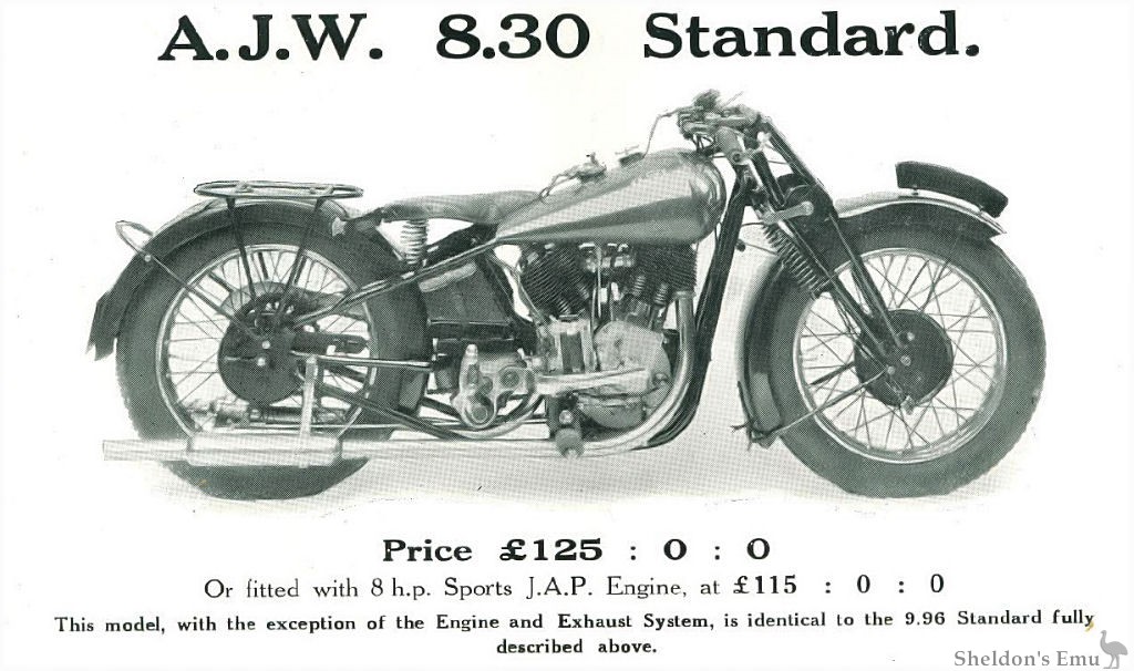 Jack Young on his AJW Speedfox, with Fred Jolly and his emu