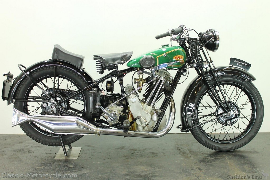 Introduced for the 1927 season, the influential 'Sloper' started a trend which saw many of BSA's competitors adopt inclined motors. The Sloper featured a trend-setting saddle tank that afforded a low seating position, and for 1930 gained chromium-plated brightwork and a new frame with forged steel spine. Models with the 493cc overhead-valve engine came with twin-port cylinder heads. For 1930 the Birmingham firm offered no fewer than 18 models, six of which had inclined engines.