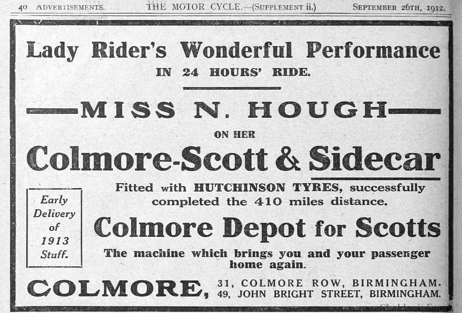 The Australian rider S.L. Bailey is thought to have worked at Colmore after leaving Humber, subsequently joining Douglas.