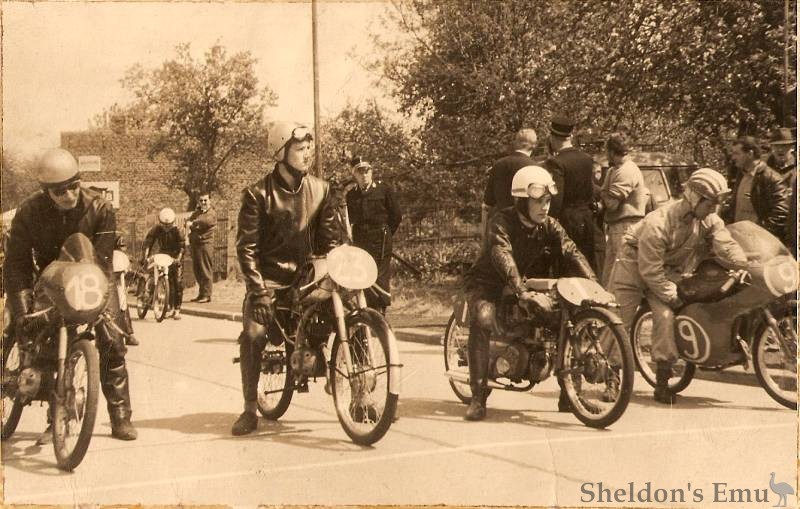 From left to right: Jacques Bollens (Itom), myself: Paul Maes (Itom), Jacky Ickx (Kreidler), Degliesposti (Itom)