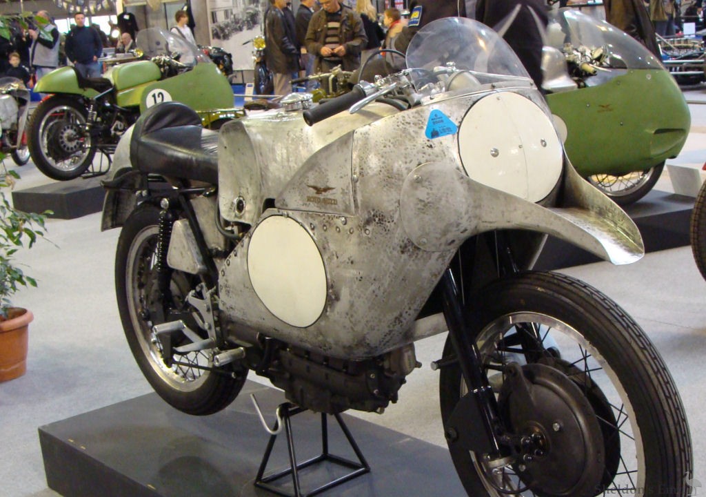 This Guzzi was designed by the engineer Carlo Gianini of Rondine fame. Equipped with an inline longitudinal 4-cylinder engine with cardan shaft transmission, it first appeared at the end of the 1952 racing season.