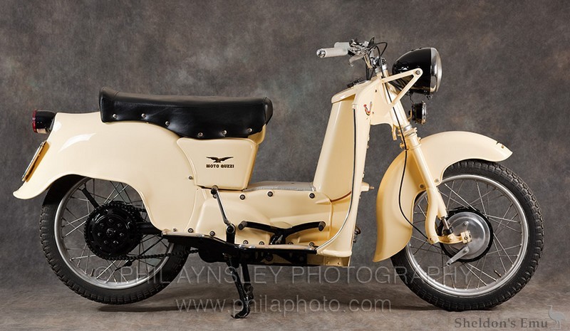The Galletto (Cockerell) was produced in several increasing capacities (150, 162, 175 & 192cc) from its introduction in 1950. This is a 162cc model from 1952. It is traditionally known as the scooter favoured by lawyers, engineers and most famously, priests. It was also used by the Italian Postal Service. A spare wheel normally mounted across the front of the leg guard. Photographed near Sydney in April 2010.