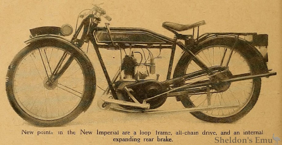 New points in the New Imperial are a loop frame, all-chain drive, and an internal expanding rear brake.