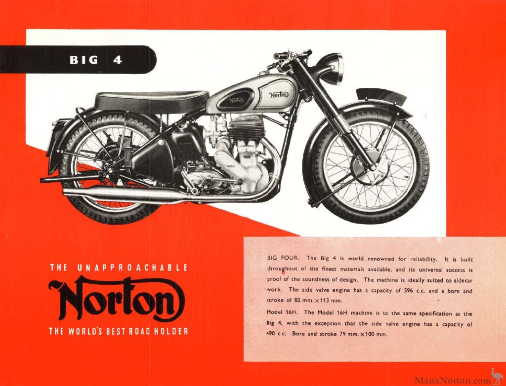 The Model 16H machine is to the same specification as the Big 4, with the exception that the side valve engine has a capacity of 490 c.c. Bore and stroke 79 mm x 100 mm.