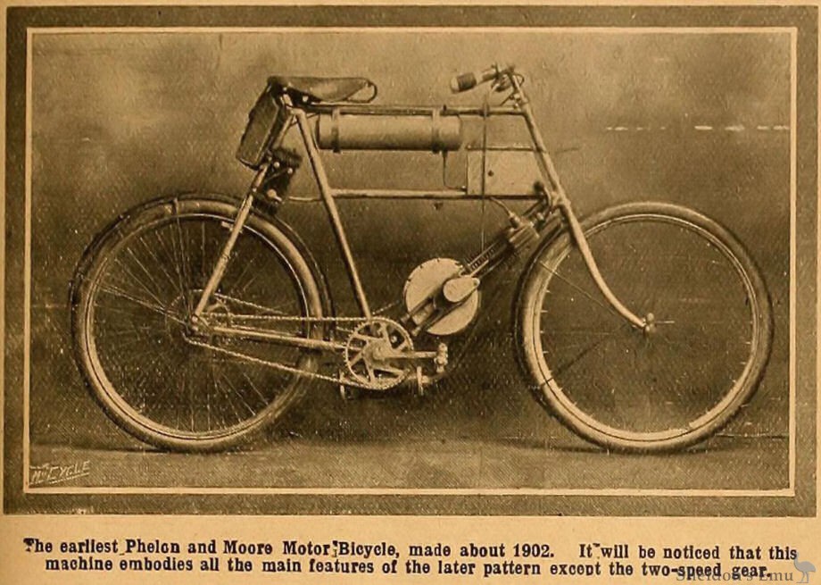 The earliest Phelon and Moore Motor Bicycle, made about 1902... (Correction published the following week, giving 1900.)