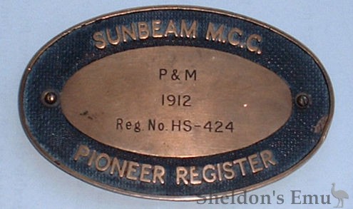 P&M (Phelon & Moore) later became known as Panther Motorcycles. This plaque was issued by the Sunbeam Motorcycle Club.