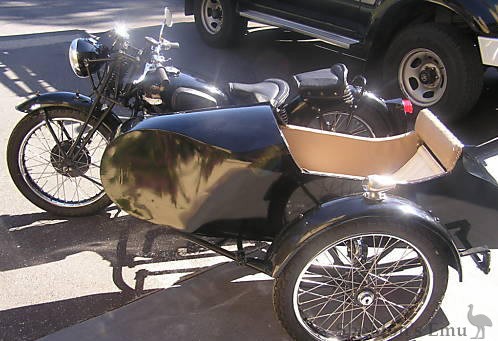 M100 1938 Panther with a Dusting side car with sling type seat. The machine was made by P&M Motorcycles in England and was a very popular bike as it came with a sidecar option.The M100 is a single cylinder 600cc engine ,I have done some research about the bike on the internet but as the bike is not that common I did not find a great deal of information.This Vintage bike I believe may be the only one in Australia. I purchased the bike 5 years ago and was told that it was restored by the original owner many years ago. The restoration job is a bit rough as it was done by a 70 year old,the side car guard has not been properly prepared along with a few minor dents on number plate and tail light assembly. I am selling the bike as is, I have a Velocette that was my fathers bike and I need funds to complete this. The Panther was running when put in storage 2 years ago but I am unable to start it at the moment it could be something to do with the carby? I rode the bike to the storage container when it went to storage. I have some documents that came with the bike but they are only copies and not of much importance.