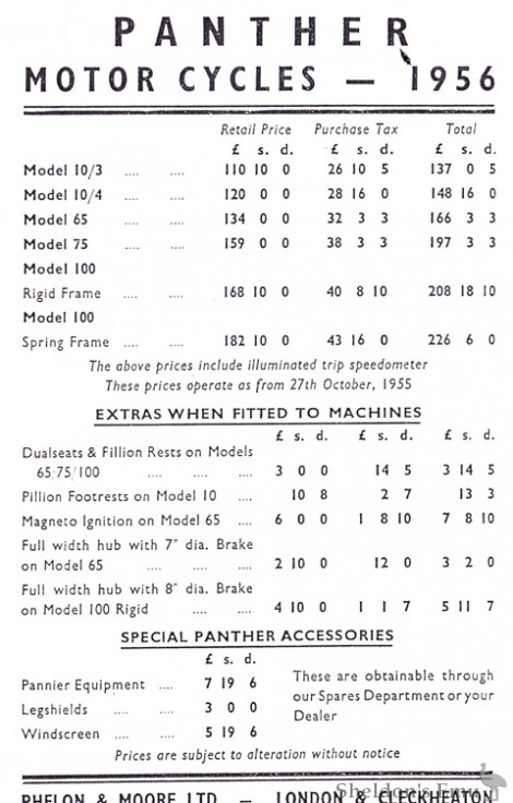 Model 10/3, Model 10/4, Model 65, Model 75, Model 100 Rigid Frame, Model 100 Spring Frame