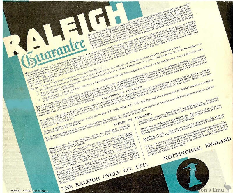 Raleigh 1933 Guarantee