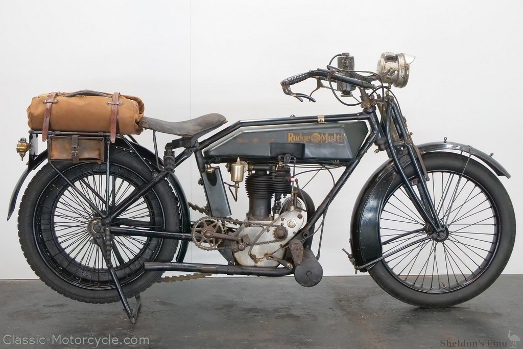 The Multi saw active service in World War I, the Italian Army ordered a batch at the end of hostilities and the Multi was the model selected for manufacture in 1918 to get production underway, to re-finance the Rudge operation. By 1921 Rudge production was running at 30 machines a day and riders such as Bob Dicker and Bill Lacey kept the Rudge name in the headlines with successes at Brooklands and other events.