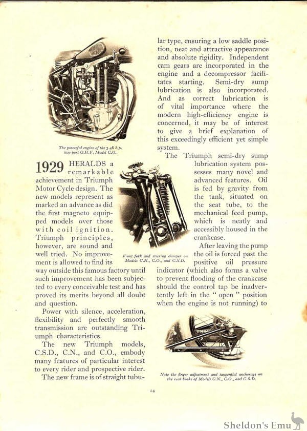 1929 Heralds a remarkable achievment in Triumph Motor Cycle design...