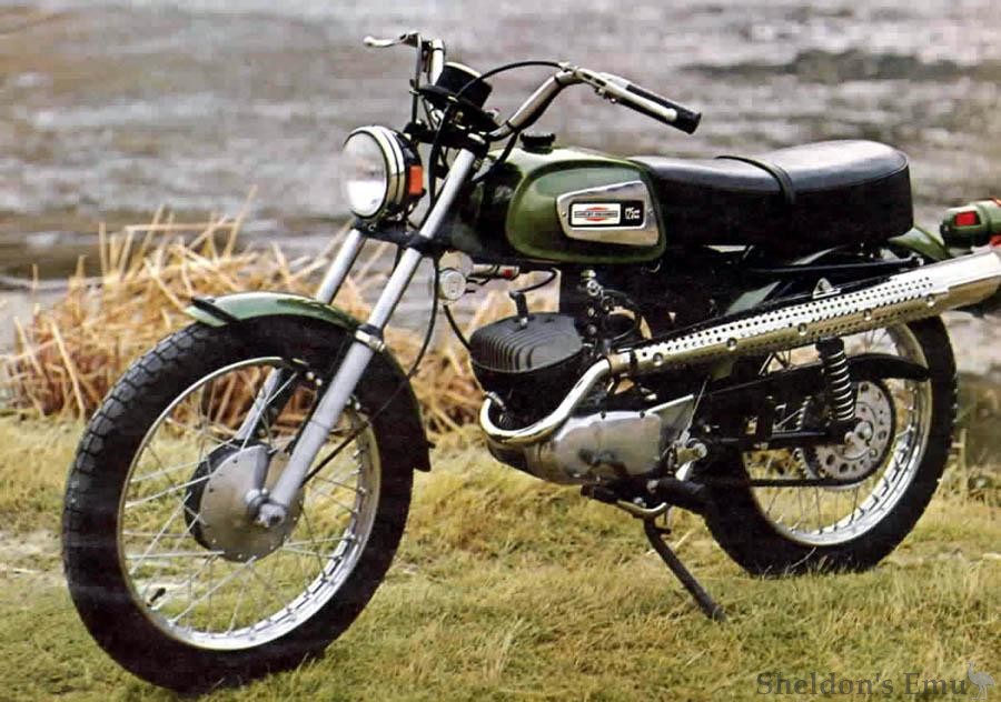 Production of this model ended in 1970 after 560 were manufactured. A Scrambler version of the Aletta was built in 1968 and the production of that model ended in 1970, with some 613 units produced. In 1972 another version of the Aletta 125cc model arrived in the form of the 125cc De Luxe - production ended in 1973 with 1014 units manufactured.