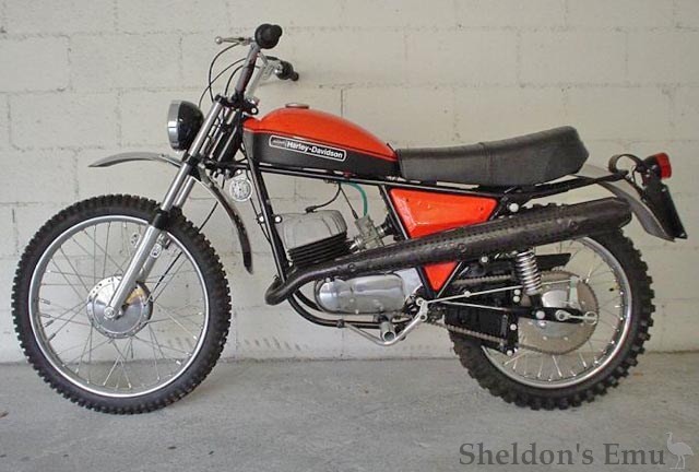 In 1974 a modified model was introduced, with the exhaust pipe beneath the engine on the right hand side. According to the A.R.S.I.M.A some 998 machines were produced, but sources in the Harley world give far higher figures.