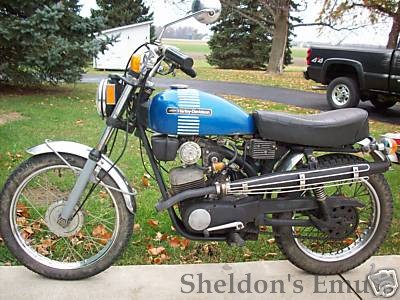 The Z-90 was marketed for those who preferred a somewhat larger mini-bike. According to the promotional literature it was to be a model that was suited for road riding and off-road adventure and could carry a pillion passenger. The engine is identical to the X-90: bore and stroke= 48x50mm and a compression-rate of 1 : 9.22. The electrical system is changed to an AC system, flywheel magneto with coils and a voltage-regulator which is also used on the SS and SX 350. The frame was based on the SR 100, also known as the Baja in the Aermacchi-Harley-Davidson era. The production of this model was from 1973 until 1974, with some built in 1975 - in total there were 17,974 of this model manufactured. They sold new in the Netherlands for f 1.695,- in 1973, 1.895,- in 1974 and in 1975 (more than one year old) for 2.195,-.