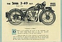 With the wealth of 33 years experience in manufacturing motor cycles of distinction, not only for the tourist, but also for road and track racing, we have every confidence in introducing the 3.49 h.p. machine which has been built to meet the needs of the discriminating motorcyclist.