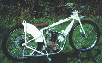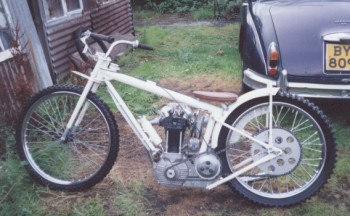 A novel feature is of this particular type is that the top tube of the frame forms a "sprint" methanol tank. This Speedfox was made by AJW motorcycles in Wimborne Dorset.