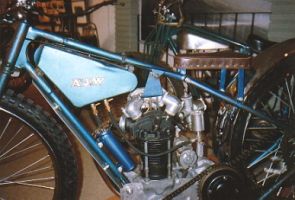 Also picture are photographs kindly sent to me by Bennie Ludolphy of yet another AJW machine. This AJW is with a more or less normal frame, but please note, there is no saddle down tube. On top of the cylinder head is a bracket for mounting it to the top frame tube. This machine is one that is on display in a museum in Sweden.