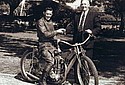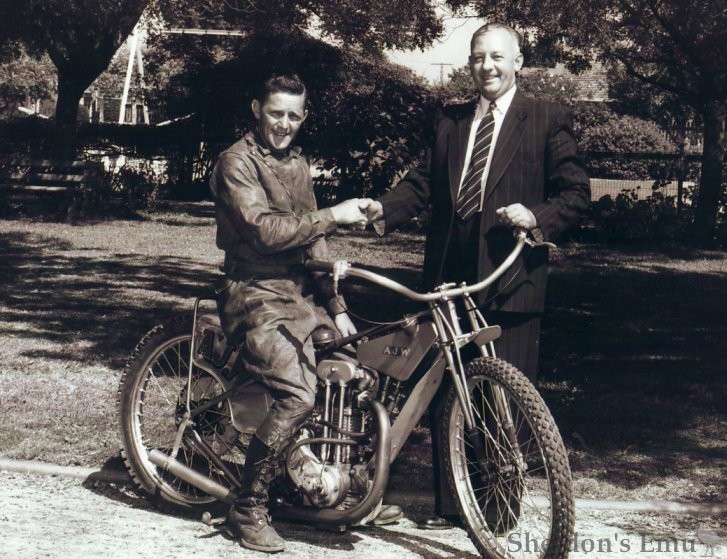 Jack Young on his AJW Speedfox, Fred Jolly and pet emu