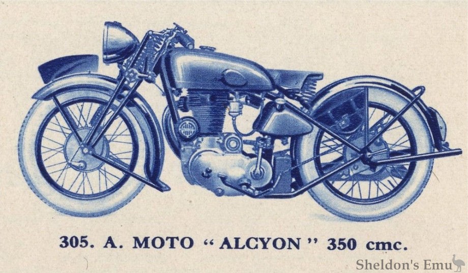 Alcyon produced a considerable variety of models from 98cc two-strokes to large capacity vertical and V twins, and produced a shaft-drive version during the 1930's.