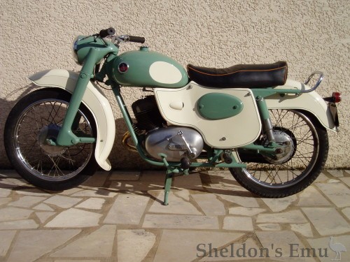 The firm absorbed several other French manufacturers including Armor, Labor, Thomann and Olympique. Postwar they produced smaller capacity two and four stroke machines using engines from AMC, VAP and Zürcher. Alcyon was absorbed by Peugeot in 1954. Some sources indicate the marque disappeared 1957, others as late as 1968. Another French marque, Austral, is related.