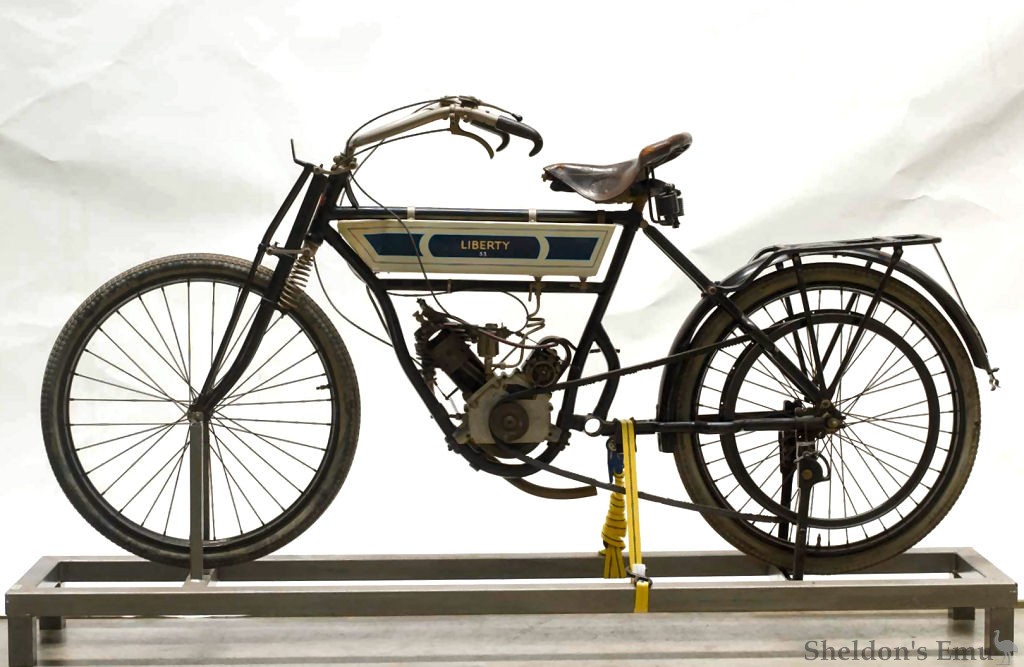 Manufactured in Victoria by the Acme Motor & Engineering Company of 355 Lonsdale Street Melbourne around 1916. It was typical during the two decades before the First World War for bicycle manufacturers to diversify into motor cycle production, often building or assembling motor cycles from largely imported components and selling them under their own brand name. The Liberty brand had been introduced in 1901 for the earlier Acme Cycle Company's range of bicycle components. The first Liberty motor cycle produced by Acme appeared around 1904 using imported Minerva and Chater Lea components. The business was run at this time by partners Sydney Darby and Frank Bennett.