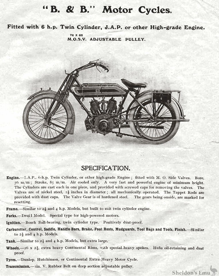 B. and B. Motor-cycles are built for Australian conditions. They are lighter in weight than the usual type of heavy-duty machine, but much heavier than the usual light-weight 90 or 100 lb. motor cycle.