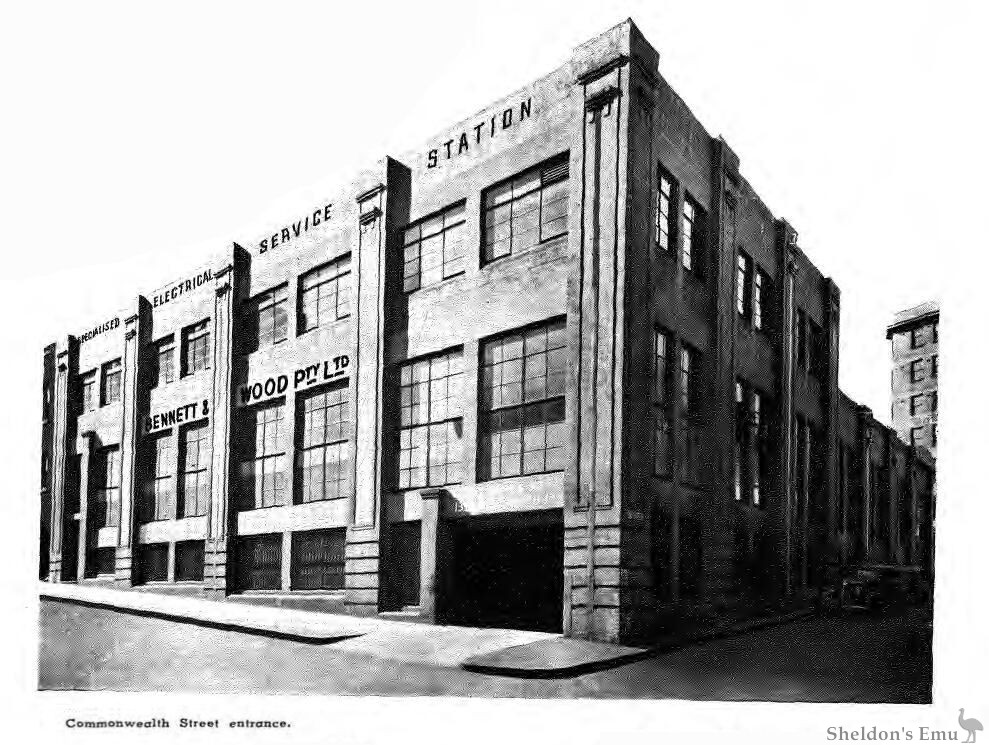 The association of Bennett & Wood Pty, Ltd. with the motor cycle trade dates back to the very earliest days. In 1898, the Company imported the first motor cycle to be seen in Australia. Over the years, the Company has imported a wide variety of models from many overseas sources, and has taken a leading part in popularising this form of transport in Australia. By designing many types of delivery bodies for different trades, the commercial side of motor cycling has been developed to a high degree, whilst the Company has also fostered motor cycling as a sport and relaxation by encouraging clubs and competitive open events.