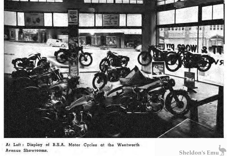 For more than a quarter of a century, Bennett & Wood Pty. Ltd. have imported B.S.A. motor cycles from England. These machines have proved extremely suitable for a wide variety of Australian transport needs sporting, pleasure and utility purposes. Bennett & Wood Pty. Ltd. distribute B.S.A. motor cycles in Queensland as well as in New South Wales. Other products of the B.S.A. factory Sunbeam motor cycles and New Hudson auto cycles are also distributed by the Company in N.S.W. and Queensland.