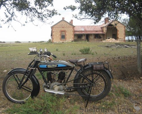 The pictures are from the earlymotor.com site which states, "...able to locate the following advertisement in the Geelong Advertiser in 1921... Not only does the advertisement pin down the origin of Blue Bird Cycles, it also identifies Mr. Kinleyside as an agent for JAP motorcycles. Presumably Blue Bird cycles were sourced from Healings, who would also supply a motor cycle from their catalogue should the occasion arise."