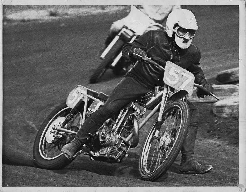 Ernie at Tivoli Circuit 60 years ago. This bike is now in the Ipswich Museum. Photo by Barry Marshall.