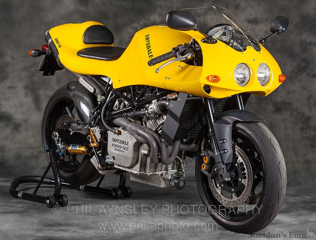 Four of these machines have been built to date (Mar 2021) - two 750cc and two 1000cc. The first 750 was built in 1995, the first 1000cc in 1999. Three of them are in Sports format and one of the 1000's is naked. They are built to order using engines and components specified by the customer. Models include the 1000cc Drysdale Bruiser, one of which was stolen in 2015.