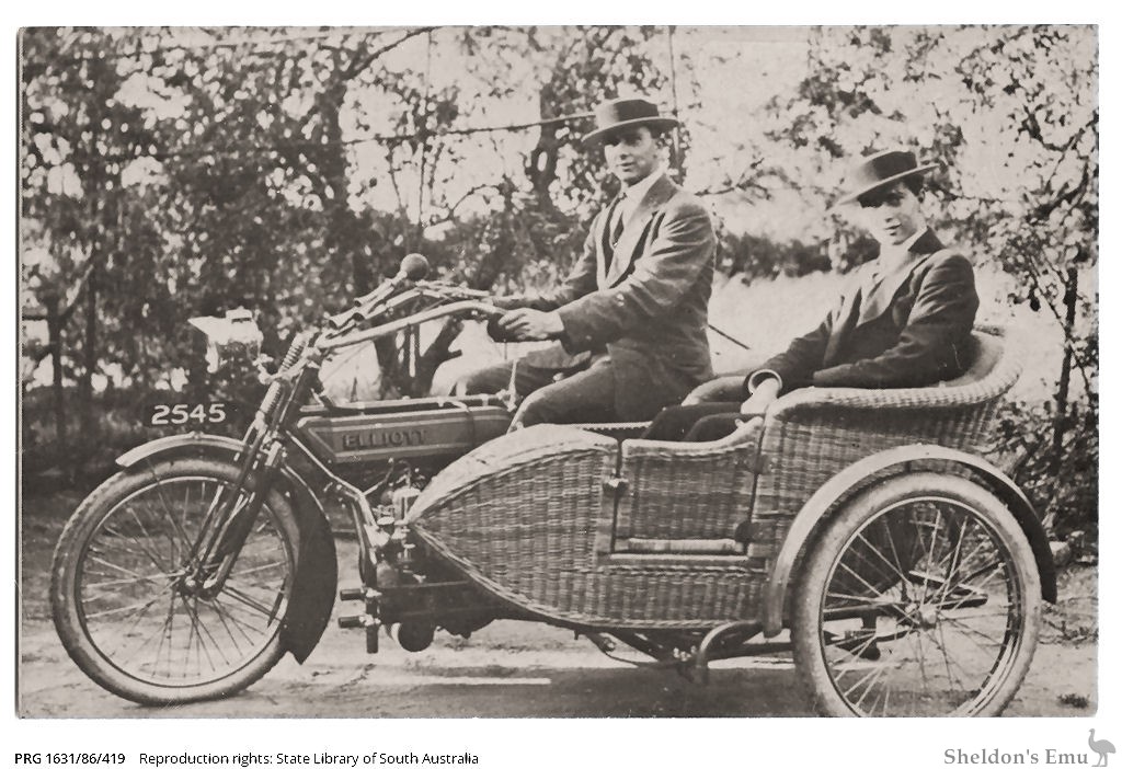 Manufactured 1912-1935 by Elliott Garage & Cycle Factory, Payneham, with showroom at 91 Flinders Street Adelaide by Laurie A. Elliott and Bertrand Elliott. [1]