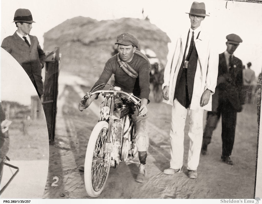 South Australian Motor Cycle Club Easter Carnival held at Kadina. B.T. Carroll riding an Elliott-Villiers, who came second in the 100 mile event.