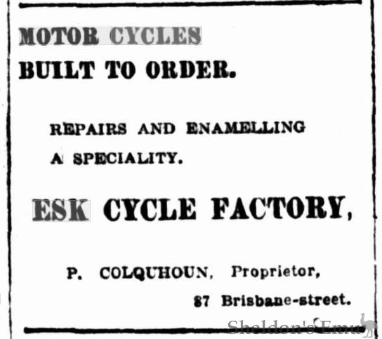 Esk bicycles. At this period he was vice-captain of the City Cycling Club. Ultimately he sold out to