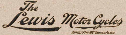 A 1920 advertisement offered a Lewis 2-stroke and Lewis 6 h.p. JAP, along with P&M and Sopwith ABC motorcycles.