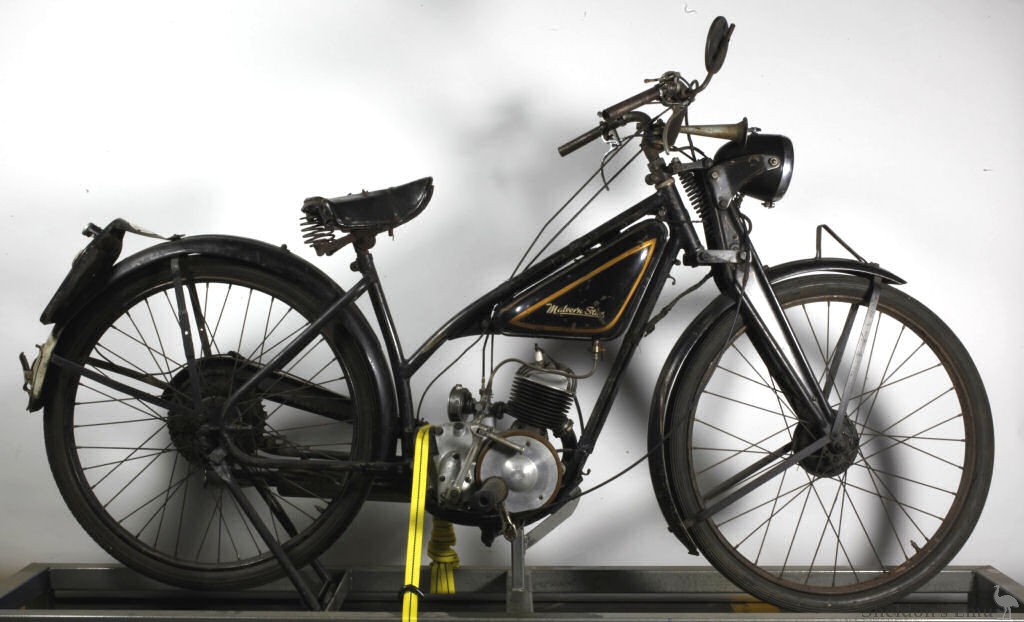 An earlier Malvern Star autocycle incorporates a 49cc Mobylette engine. In the post-1945 years Malvern Star also sold a diminutive 32cc Berini cycle-motor priced at around 8 Pounds. This unit could be fitted over the front forks of any bicycle and was claimed to achieve a fuel economy figure of 240 miles per gallon. Malvern Star also acted as agents for imported Vespa, Jawa and CZ motorcycles and motor scooters which combined with the end of petrol rationing soon made the autocycle obsolete.