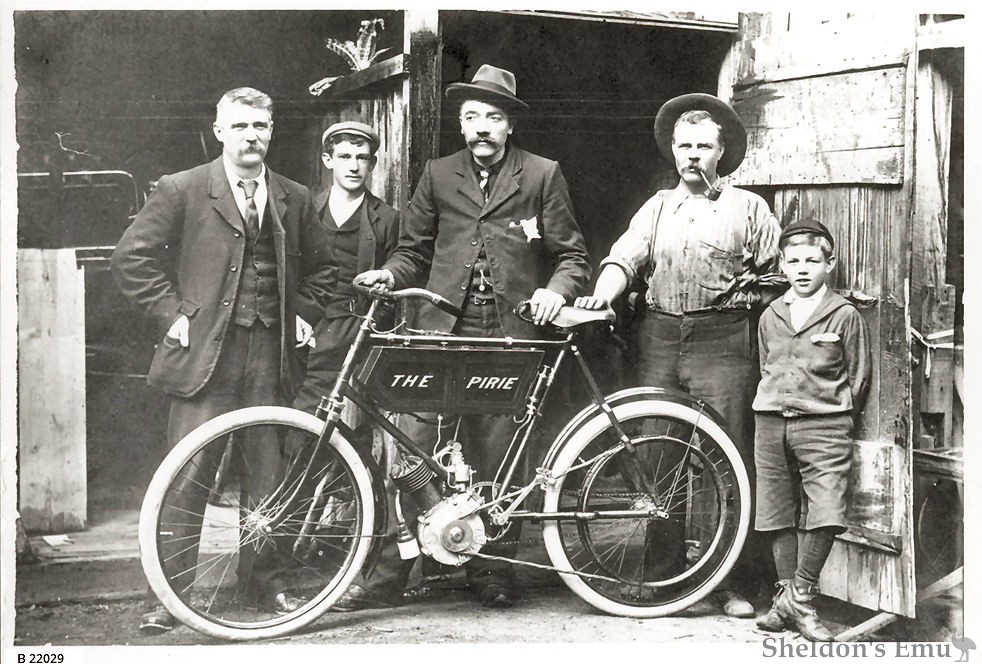 A 1908 advertisement states "The Pirie Lightweight Twin Cylinder Motor Cycles are reliable and sure."